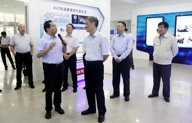 熊群力一行先后考察、参观碳化硅材料研发中心、创新中心展厅以及微电子共烧陶瓷器件数字化车间,详细询问产品生产工艺和设备研发情况,深入了解智能制造装备和三代半导体材料等取得的进展。