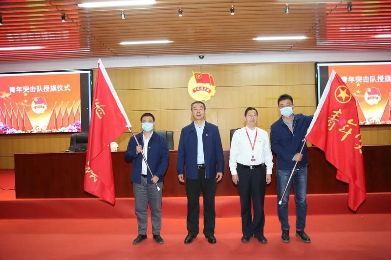 会上,左雷、曹勇,2所党委副书记、纪委书记吉慧元,45所党委副书记薛东风一起向青年突击队代表授旗,并向青年代表赠书。