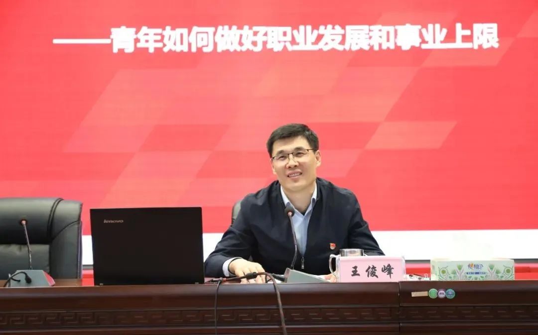 会上,王俊峰以《把握新时代争当新青年 开启新征程——青年如何做好职业发展和事业上限》为题,为全体参会人员讲授团课。他围绕“我的优缺点是什么”、“我的工作方式是怎样的”、“我的价值观是什么”三个方面,用生动的事例、深入浅出的道理,为团员青年解答如何进行自我管理,成就自己、成就人生。