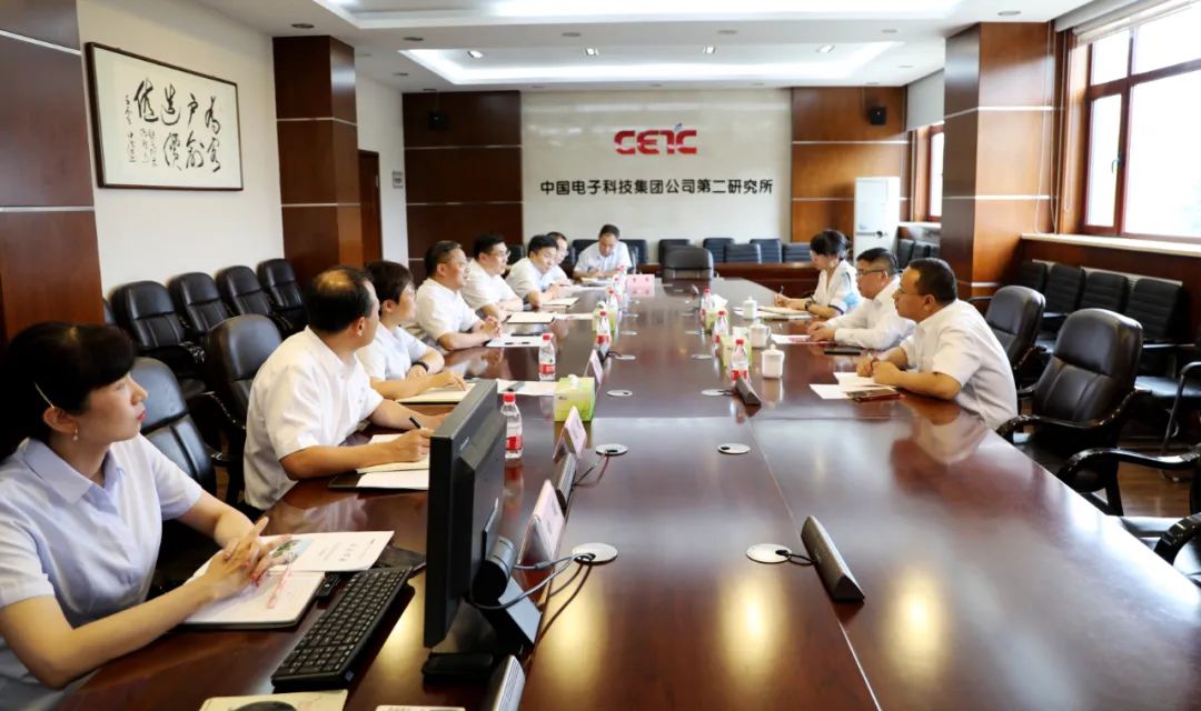 7月14日下午,中国电科9所所长吴江、副所长闫欢一行到2所调研交流,就进一步加强业务合作与所长唐景庭、党委书记王俊峰进行工作会谈。