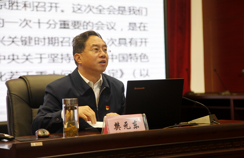樊元东从“中国特色社会主义制度、推进国家治理体系和治理能力现代化的重大意义”、“中国特色社会主义制度和国家治理体系的显著优势”、“治理能力现代化的总体要求、总体目标”、“重点任务及要求”、“加强党的领导,确保全会确定的各项目标任务全面落实到位”、“全面做好学习宣传”等方面,系统深入、全面准确解读了全会精神,既是一次精准的辅导,又是一堂生动的党课。